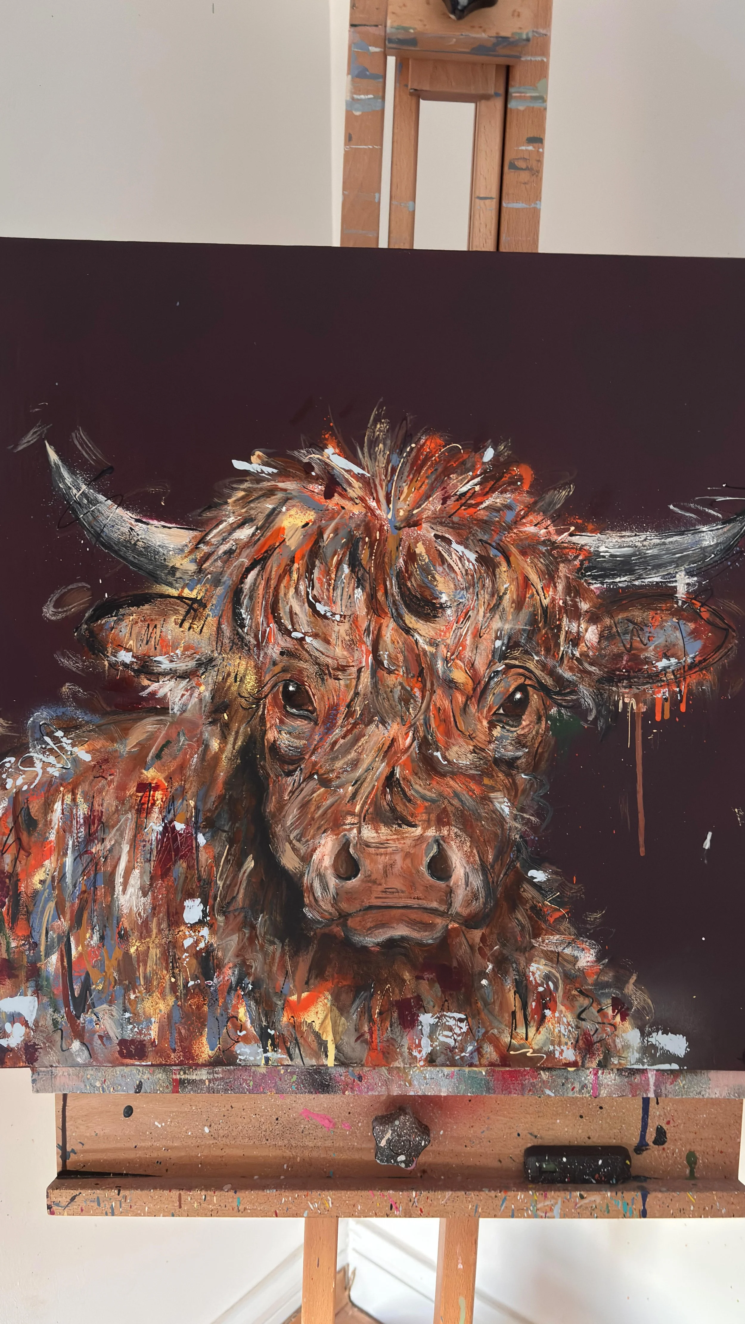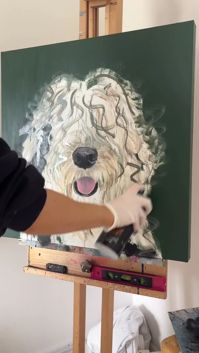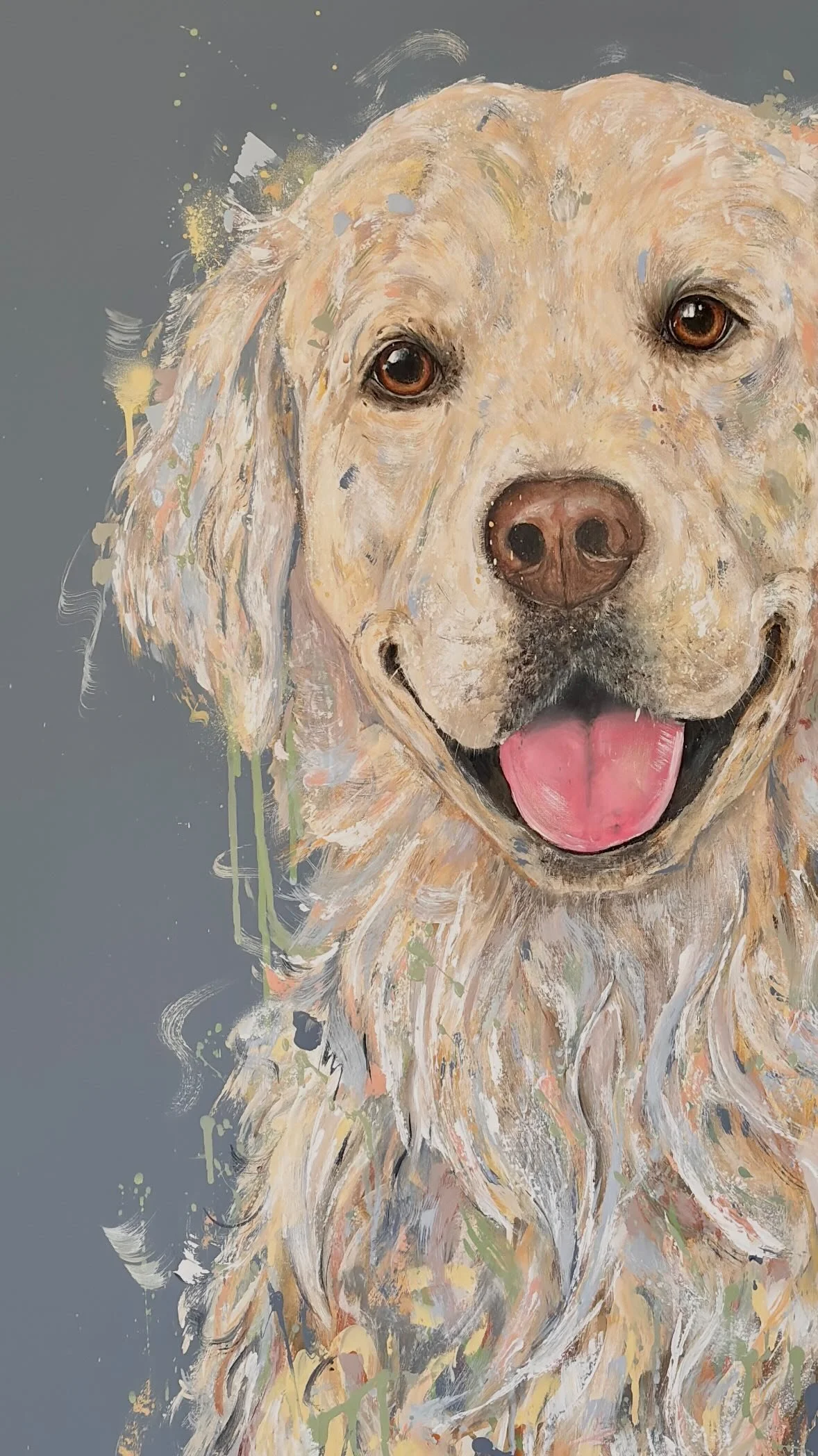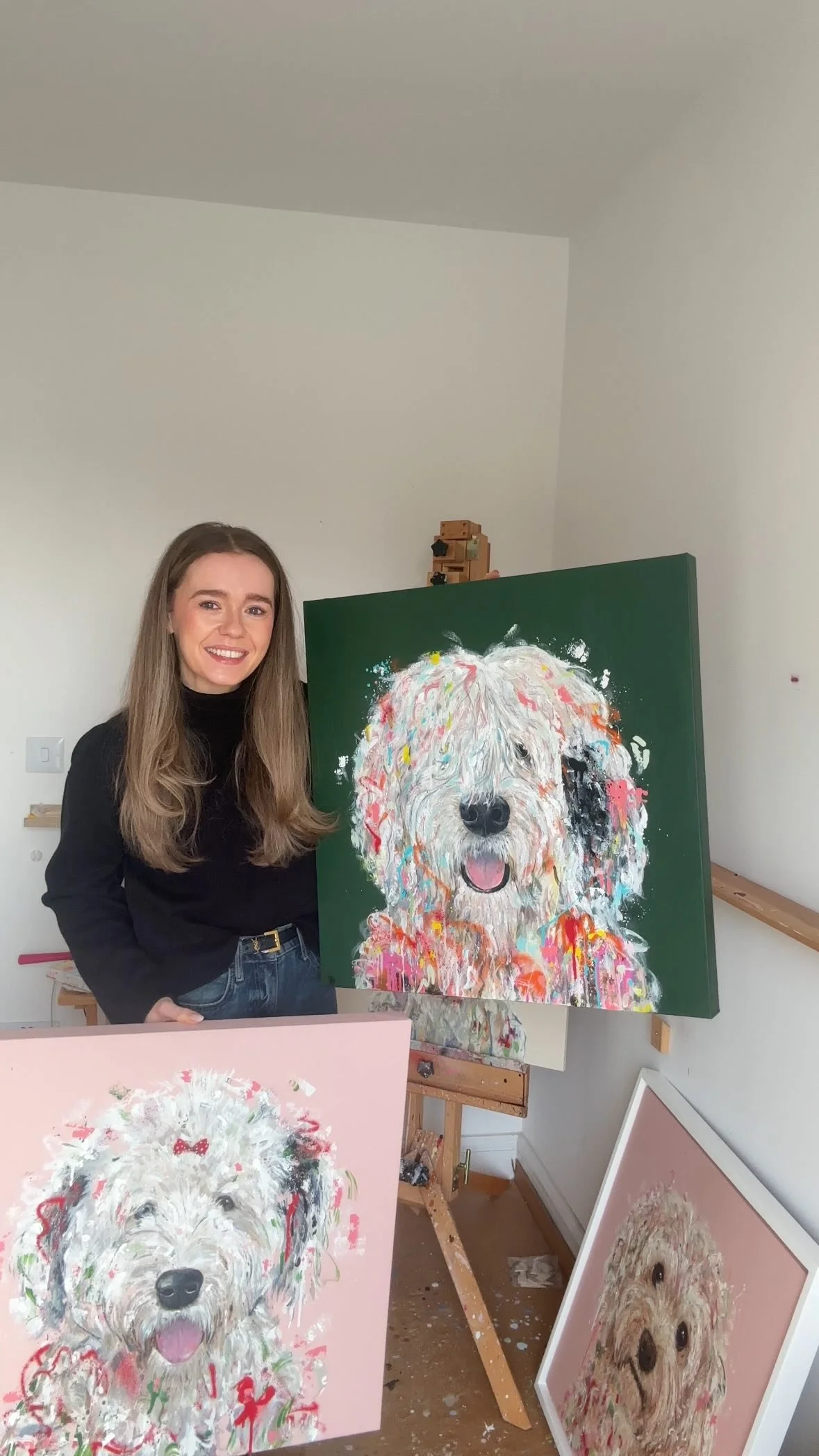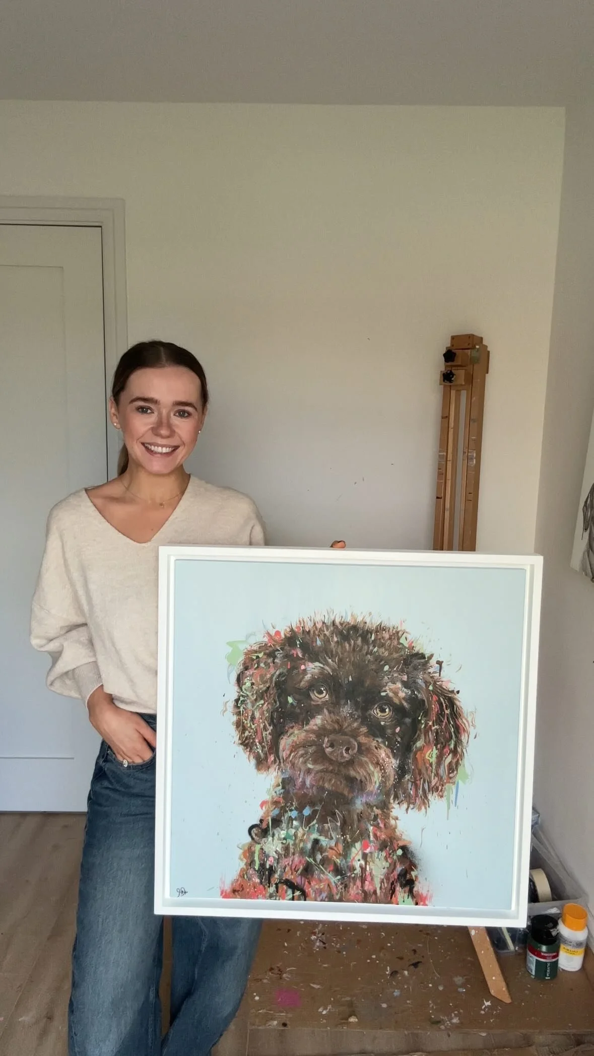 I like to describe my style as loose and imperfect. Using a mix of abstract brushstrokes and splashes of colour, along with more traditional techniques, I aim to capture the animal’s individual character and quirks that make you love them so much.