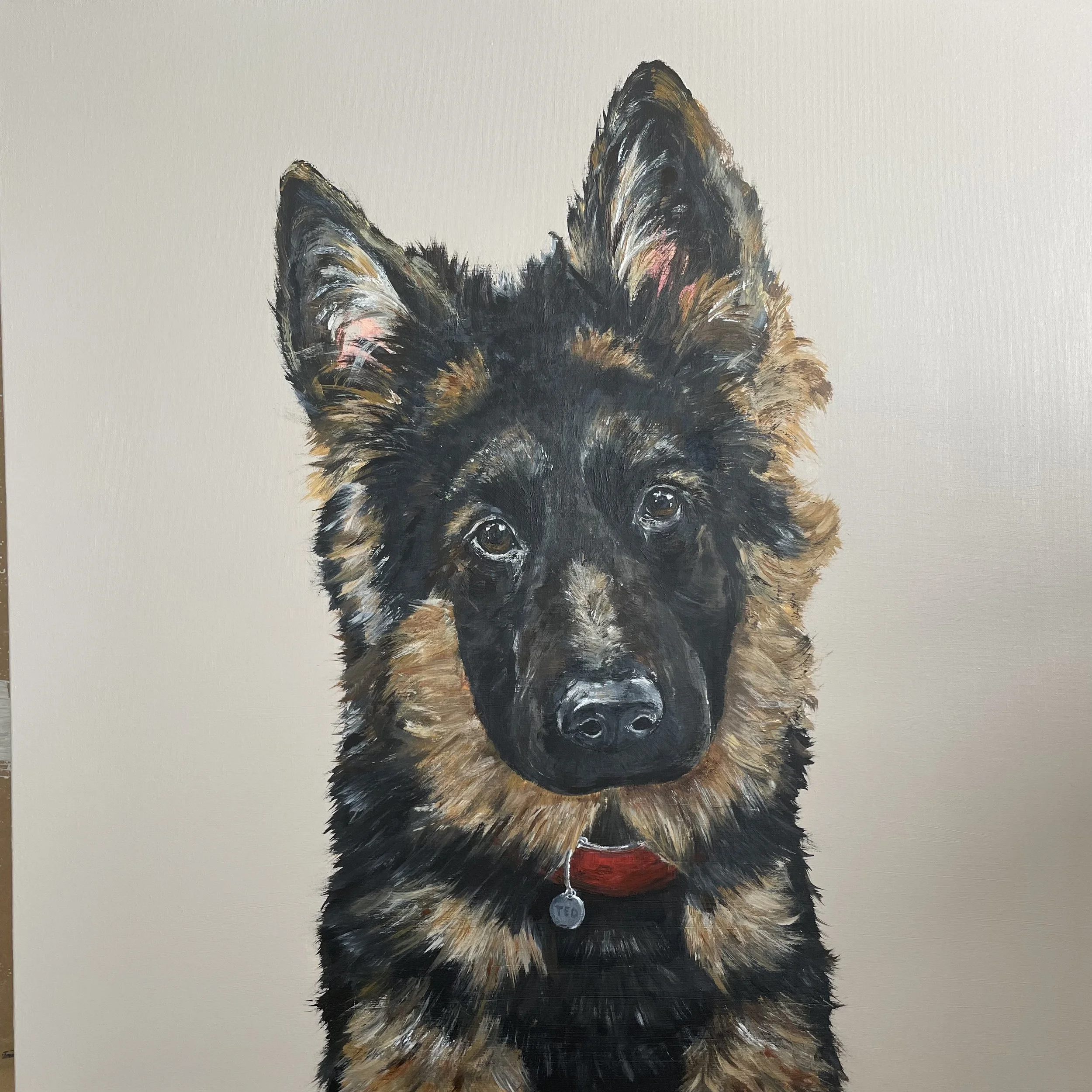 Whether it be your pet or an animal with special meaning to you, this is always our starting point. For pet portraits, I work off multiple photographs. I require as many front facing photographs as you can provide. Think of it like a passport photo of your pet. Then, a range of other photographs are useful for reference for their various colours and unique characteristics. I love capturing your pet’s quirks such as a floppy ear, head tilt or tongue hanging out.